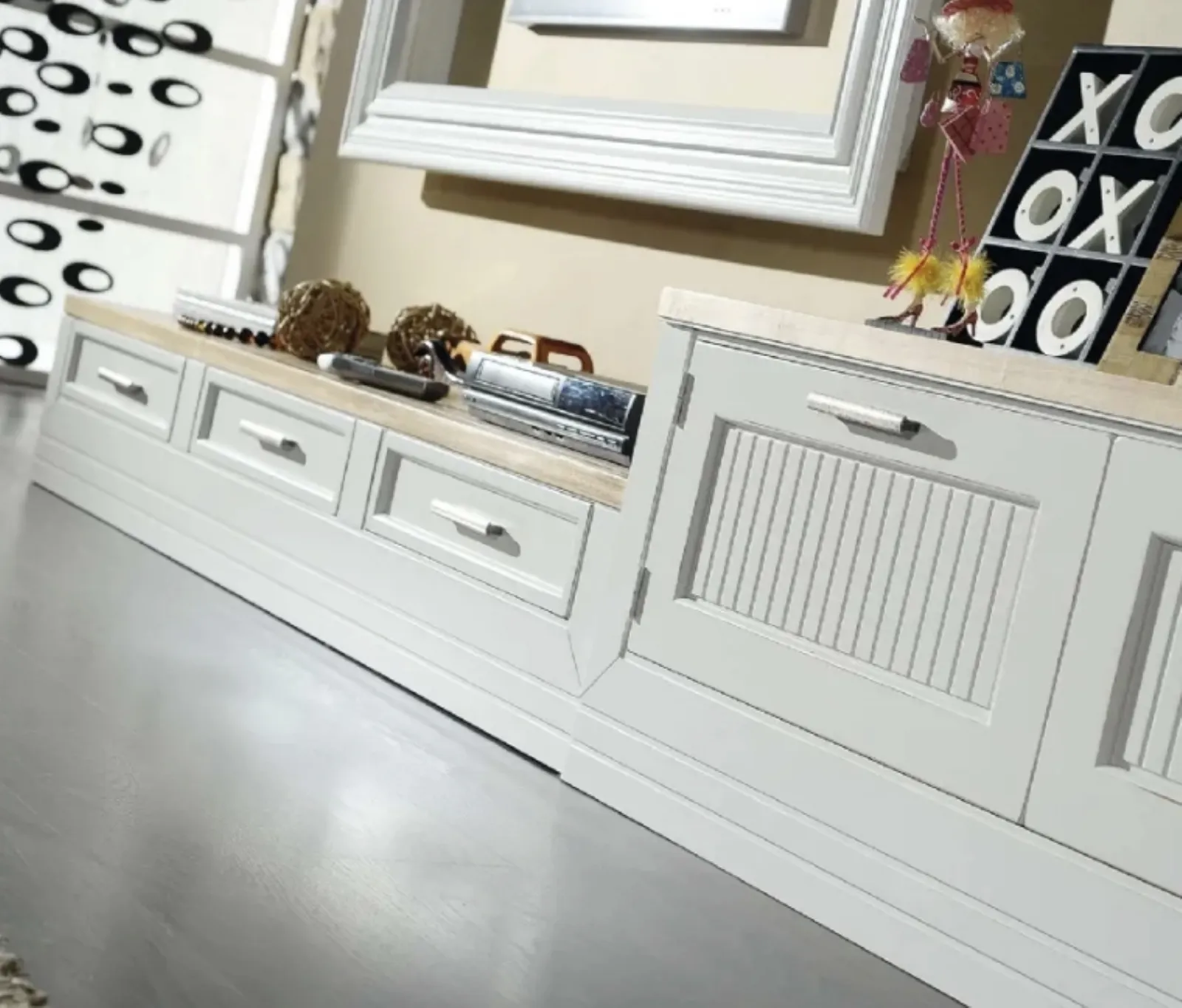 La Parete Attrezzata Provenzale di Fratelli Mirandola nella fotografia è una tra le più originali soluzioni d’arredo sul mercato: grandi doti di componibilità e le diverse possibilità di progettazione la rendono bella e di grande qualità. Fratelli Mirandola produce innovativi modelli di Pareti Attrezzate, diverse per stile e conformazioni, finiture e accessori: scopri l'Arredamento Casa della firma. I mobili soggiorno in legno laccato dalle linee classiche come il modello visibile in foto sono davvero polivalenti e capaci di ammobiliare il soggiorno ottimizzando ogni angolo. Lasciati stuzzicare da un ricco catalogo di mobili per il soggiorno e potrai trovare la parete attrezzata che fa al caso tuo.