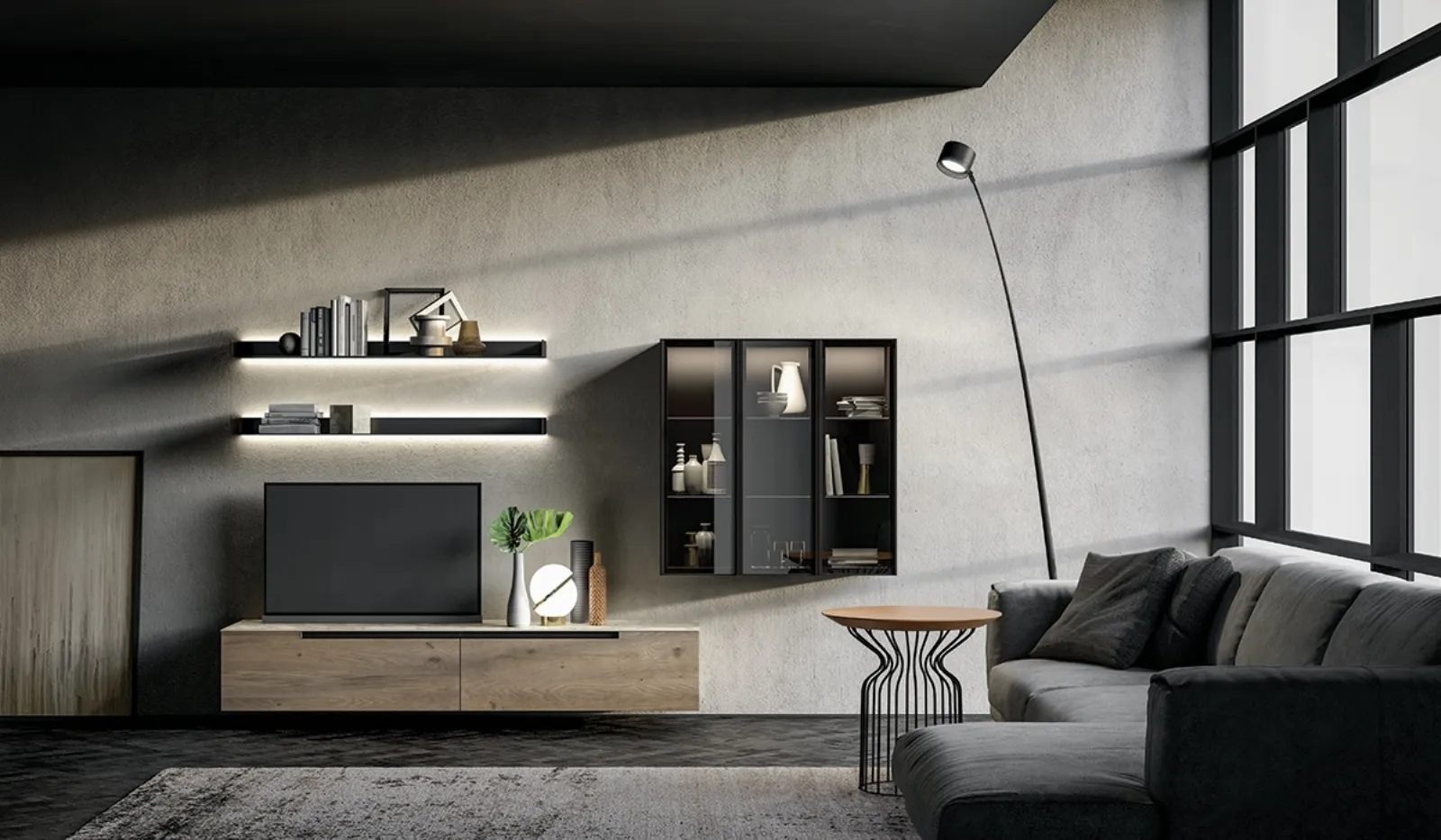 Parete attrezzata Slim Up Comp 07 in Rovere Cenere dalle forme semplici realizzata in legno, per stanze moderne