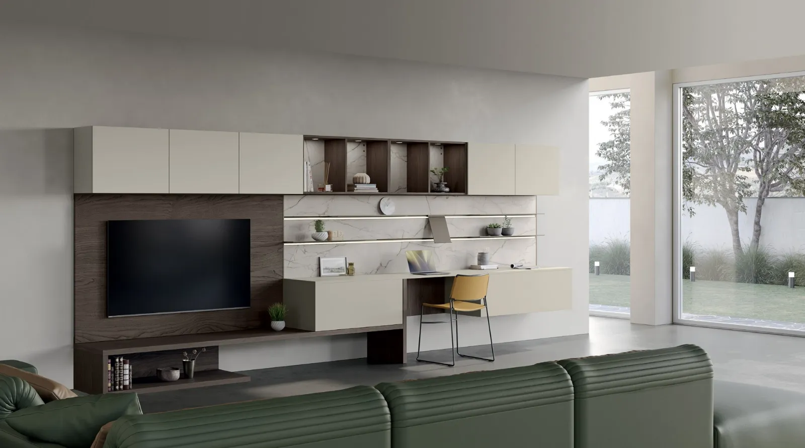 Anche in uno spazio non troppo grande, le Pareti Attrezzate riescono a ottimizzare il soggiorno valorizzando ogni angolo e assicurando differenti possibilità di personalizzazione e l'alta componibilità tipiche delle soluzioni moderne. Un po’ librerie, un po’ contenitori ed espositori: le Pareti Attrezzate sono ideali per arredare uno spazio pratico e operativo. La Parete Attrezzata Tablet 05 di Creo nell'immagine, con finitura in melaminico, risolve le più personali esigenze abitative di spazio e stile, arredando il soggiorno con praticità senza rinunciare alla ricerca estetica. Se cerchi mobili salvaspazio e realizzabili su misura per te per il tuo soggiorno, scopri le più belle proposte per il soggiorno del marchio, leader di settore.
