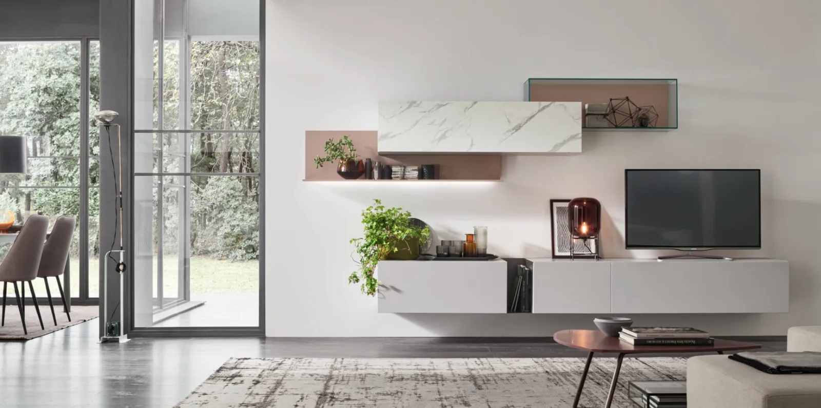 I mobili soggiorno in laccato opaco dalle linee moderne come il modello visibile in foto sono davvero polivalenti e capaci di progettare il soggiorno sfruttando bene ogni angolo. La Parete Attrezzata Unix Comp SU2107 di Maronese nella fotografia è una tra le più esclusive soluzioni d’arredo in commercio: massima componibilità e le varie possibilità di progettazione la rendono funzionale ed esteticamente gradevole. Lasciati ispirare da una ricca gamma di mobili per il soggiorno e troverai la parete attrezzata che fa per te. Maronese mette a disposizione innovativi modelli di Pareti Attrezzate, diverse per stile e forme, texture e componenti: scopri l'Arredamento Casa del marchio.