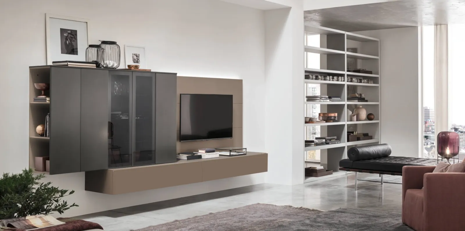I mobili soggiorno in laccato opaco dalle linee moderne come il modello visibile in foto sono davvero poliedrici e capaci di allestire il living sfruttando bene ogni angolo. La Parete Attrezzata Unix Comp SU2113 di Maronese nella fotografia è una tra le più esclusive soluzioni d’arredo in commercio: componibilità su misura e le differenti possibilità di progettazione la rendono pratica e sofisticata. Lasciati affascinare da un ricco catalogo di arredi per il living e potrai trovare la parete attrezzata che fa al caso tuo. Maronese propone inediti modelli di Pareti Attrezzate, diverse per stile e forme, texture e componenti: scopri l'Arredamento Casa del marchio.
