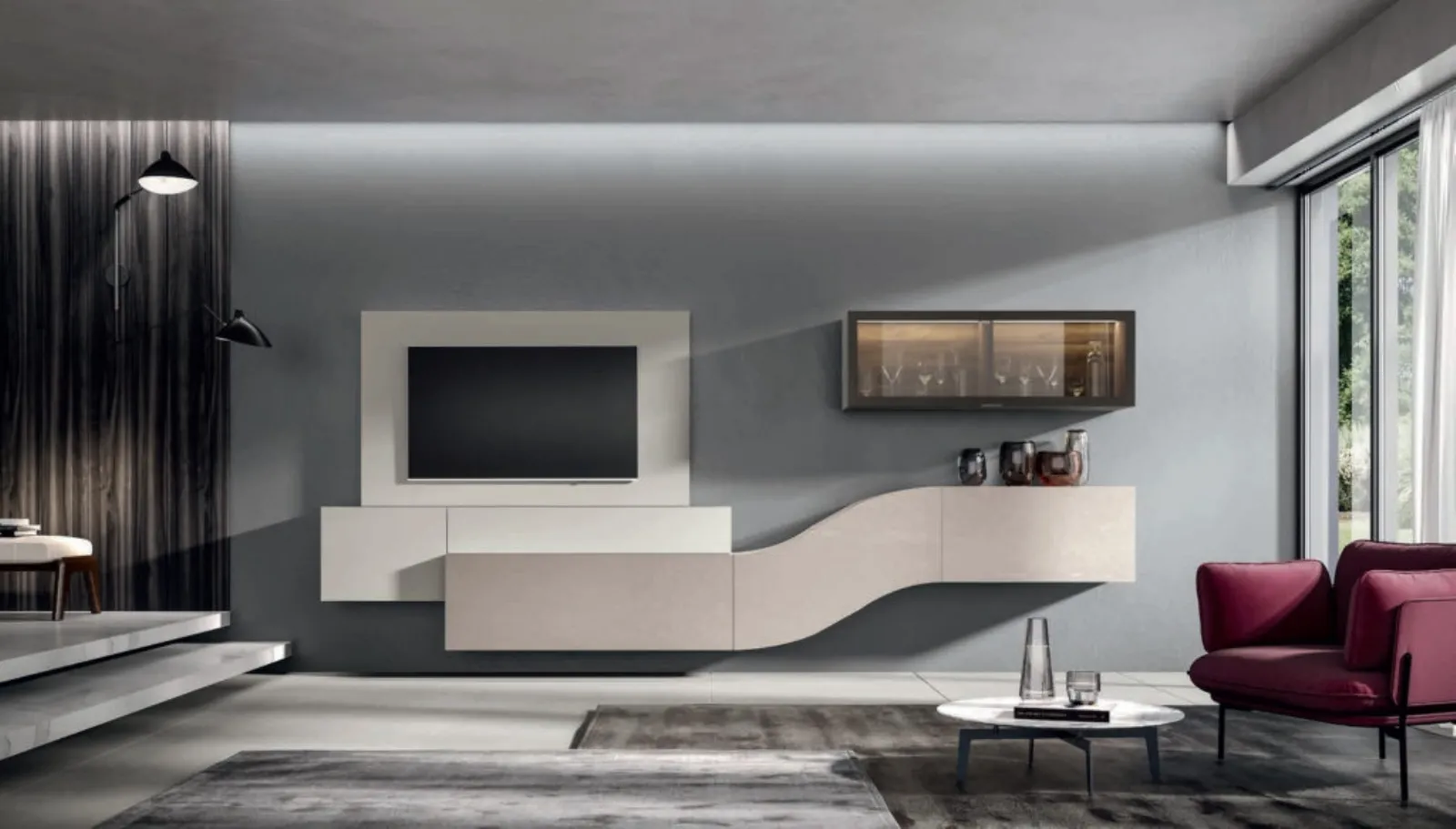 La Parete Attrezzata moderna Velvet 160 di Artigianmobili è una soluzione d’arredo unica nel suo genere: