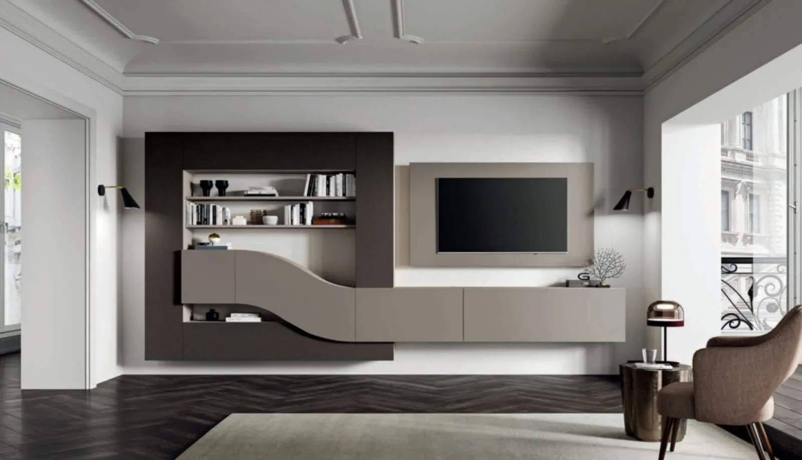 Un po’ librerie, un po’ mobili contenitori ed espositori: le Pareti Attrezzate sono ideali per ottimizzare uno spazio pratico e operativo. Se cerchi mobili salvaspazio realizzabili su misura per il tuo living, scopri le più esclusive proposte della marca Artigianmobili, specialista di settore. Anche in uno spazio non generoso, le Pareti Attrezzate riescono a ottimizzare il living usufruendo al meglio di ogni angolo e garantendo differenti possibilità di personalizzazione e componibilità su misura tipiche delle soluzioni moderne. Una Parete Attrezzata moderna come il modello Velvet 168 di Artigianmobili, con finitura in melaminico, è in grado di risolvere le più personali esigenze abitative di spazio e stile, arredando il living con praticità e ricerca stilistica senza rinunciare al design. Caratteristiche principali del modello Velvet 168 di Artigianmobili: