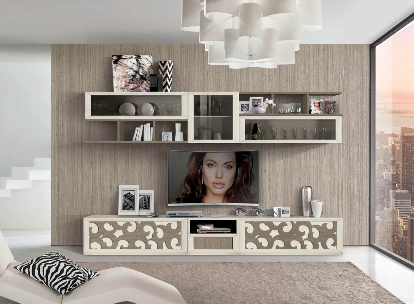 Lasciati stuzzicare da una ricca gamma di arredi per il living e troverai la parete attrezzata che fa per te. I mobili soggiorno in legno dalle linee moderne come il modello presente in foto sono veramente eclettici e capaci di progettare il living valorizzando ogni angolo. Betamobili mette a disposizione originali modelli di Pareti Attrezzate, diverse per stile e conformazioni, finiture e componenti: scopri l'Arredamento Casa della marca. La Parete Attrezzata Wind FMG3791 di Betamobili in foto è una delle più belle soluzioni d’arredo in commercio: massima componibilità e le varie possibilità di progettazione la rendono funzionale ed esteticamente gradevole.