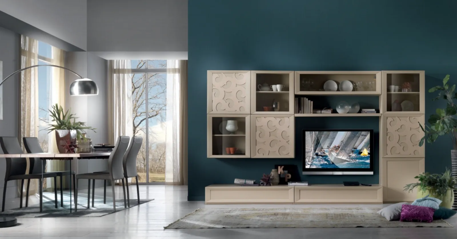 La Parete Attrezzata Wind FMG3792 di Betamobili diventa protagonista in stanze di ogni genere grazie ai suoi elementi modulari e alla possibilità di selezionare texture, materiali, tonalità, conformazioni e molto altro. Il nostro portale di Arredamento Casa in legno, in base alle più attuali e personali esigenze abitative, seleziona solo le più esclusive soluzioni d’arredo moderne, definite da grandi doti di progettualità su misura. Le Pareti Attrezzate moderne come quella nell'immagine consentono di creare differenti ambientazioni, liberando spazio nel soggiorno e usufruendo al meglio di ogni angolo. Scopri la nostra serie di arredi per il living della firma e potrai completare i tuoi interni con un design unico e la contenitività di cui necessiti.