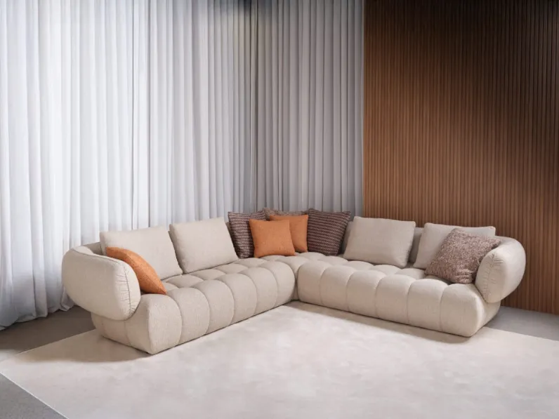 I momenti di riposo e socialità nel living di ogni casa sono condivisi da amici e parenti per merito della presenza di imbottiti spaziosi e comodi da disporre in un angolo, a centro stanza o addossati alle pareti davanti alla televisione. Conta su una grande varietà di risultati estetici, dalle tonalità alle finiture, dalle dimensioni alle conformazioni: i modelli ad angolo del marchio ti aspettano. Divano angolare Abbracci di Franco Ferri: è uno tra i Salotti design del marchio capaci di essere il centro della stanza e garantirti l'agio più totale nei momenti di riposo quotidiano. Scopri nel nostro sito i migliori modelli di divani in tessuto, come il modello mostrato in foto, e rendi il soggiorno uno spazio intimo e confortevole.