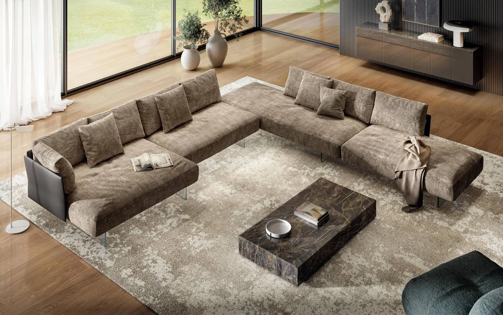 Divano con penisola Air Slim 2699 di Lago: ricrea uno spazio accogliente e confortevole in spazi design di gran classe. Contattaci per trovare divani e poltrone di ottima fattura, per info e preventivi su questo salotto e su una ricca gamma di divani anche realizzabili su misura per te. I Salotti della firma sono pensati per essere abbinati a elementi accessori di ogni tipo, come tavolini, abat jour e piantane oppure in combinazione con ulteriori divani in tessuto. Se vuoi imbottiti con penisola come il modello nell'immagine, connotato dalle forme decise e dai volumi che invitano a passare i tuoi momenti di riposo.