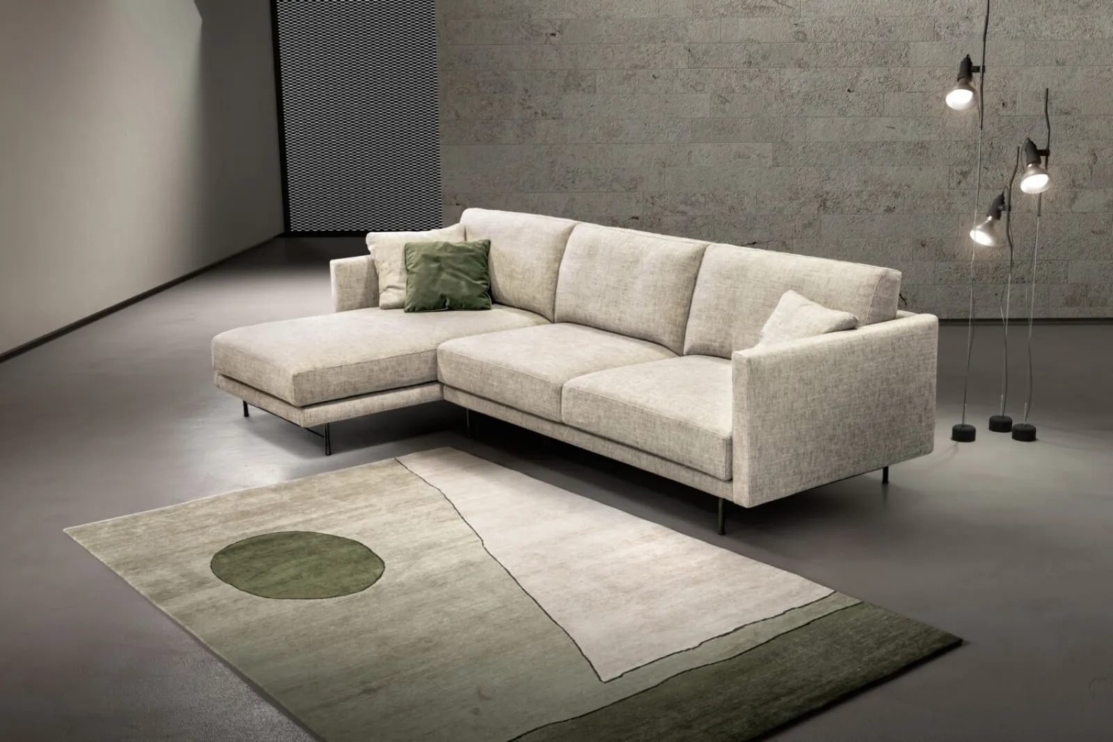 Scopri Aston di Rizzetto: imbottiti in tessuto per valorizzare un living dai richiami moderni. Arredamento Casa Salotti.