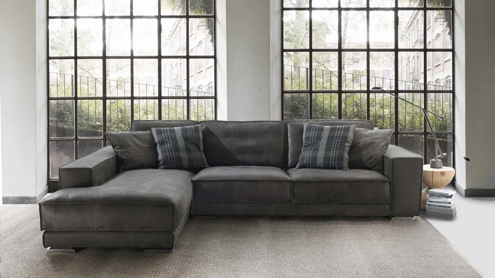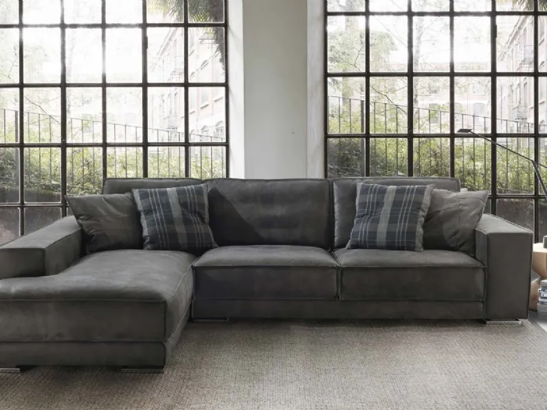 Divano Rex Taglio Vivo di Flexstyle: una tra le più belle proposte di divani e poltrone in pelle con penisola, perfetta per arredare casa in modo moderno ed elegante.