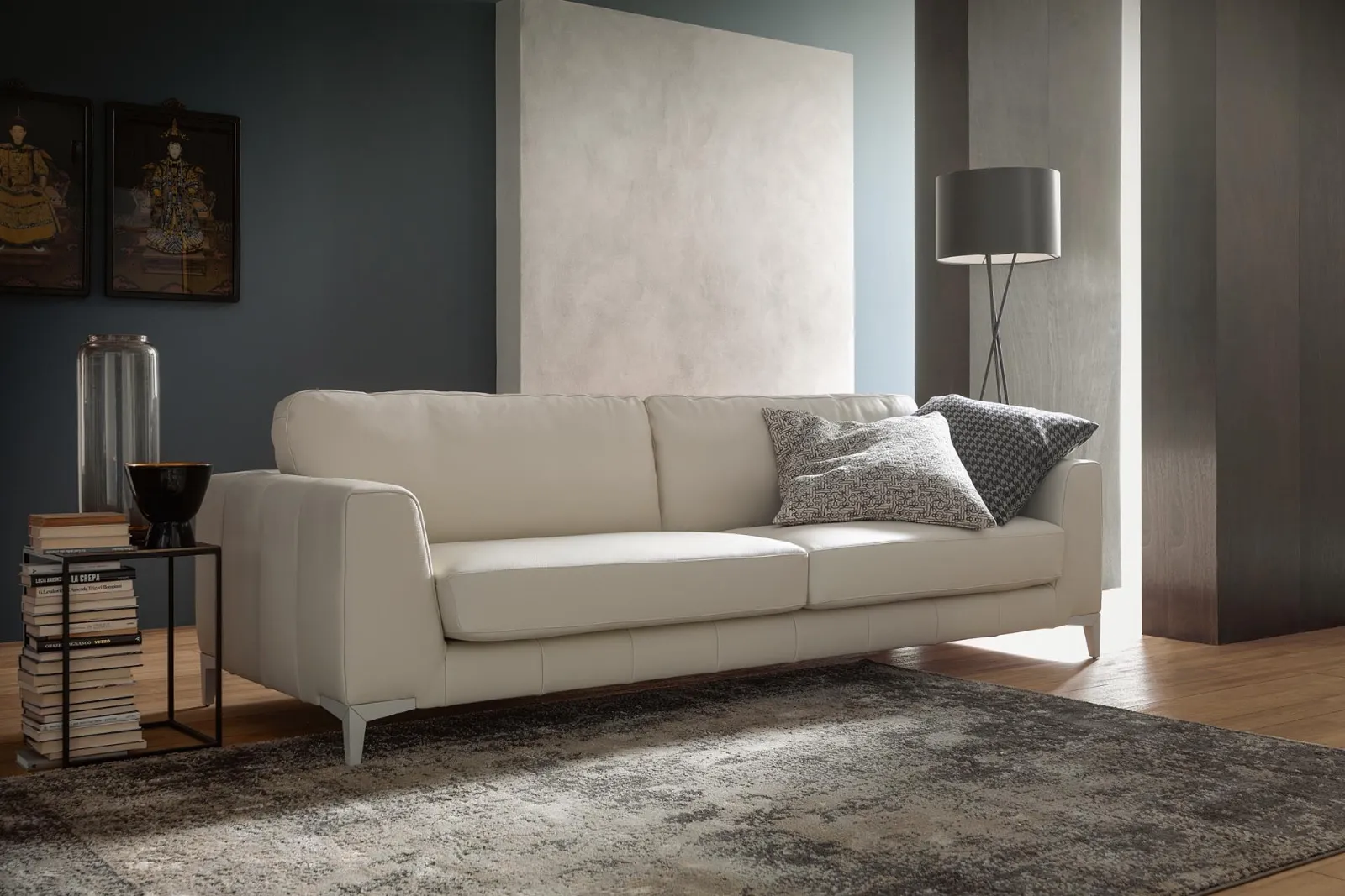 Divano Fonema di DHome: una tra le più esclusive proposte di imbottiti in pelle lineari per la tua casa. Ideale per arredare salotti con stile ed eleganza.