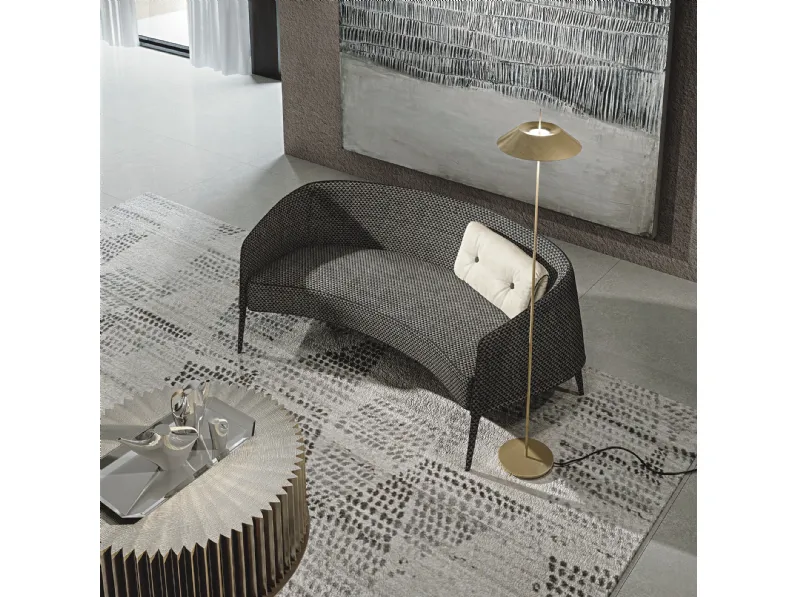 Divano a due posti Jackie di Frigerio: ideale per arricchire il tuo soggiorno con un tocco di stile e di comodità, questa soluzione è stata creata dal marchio leader nel settore Arredamento Casa. Potrai creare un'atmosfera unica grazie alla vasta gamma di materiali, forme, volumi e dimensioni. Frigerio si distingue per l'eccellenza di materiali e finiture, come dimostra il modello in tessuto presente in foto.