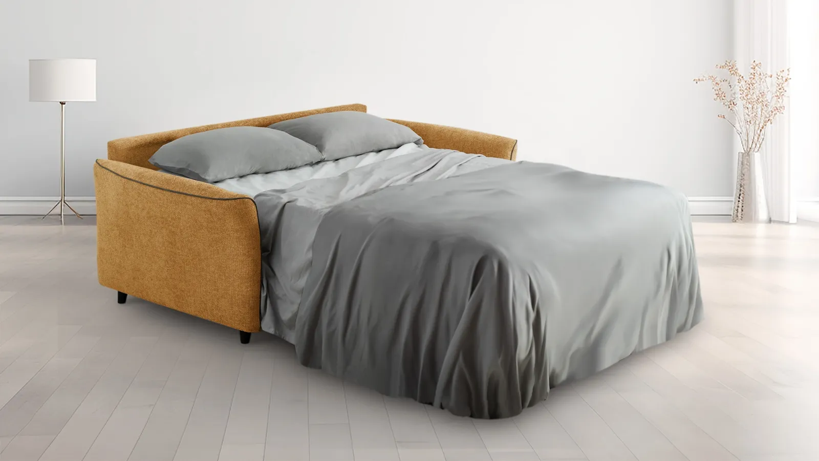 I momenti di relax e convivialità nel living di ogni casa sono condivisi da parenti e amici per merito della presenza di divani e poltrone ampi e comodi da organizzare in un angolo, a centro stanza o addossati al muro davanti alla televisione. Conta su una grande varietà di risultati estetici, dalle cromie alle texture, dalle dimensioni alle conformazioni: i modelli con letto della marca ti aspettano. Divano letto Marion di Aerre: è uno dei Salotti moderni della marca capaci di essere il centro della stanza e garantirti l'agio più totale nei momenti di relax quotidiano. Scopri nel nostro sito i migliori modelli di divani in tessuto, come il modello mostrato in foto, e rendi il soggiorno uno spazio accogliente e confortevole.