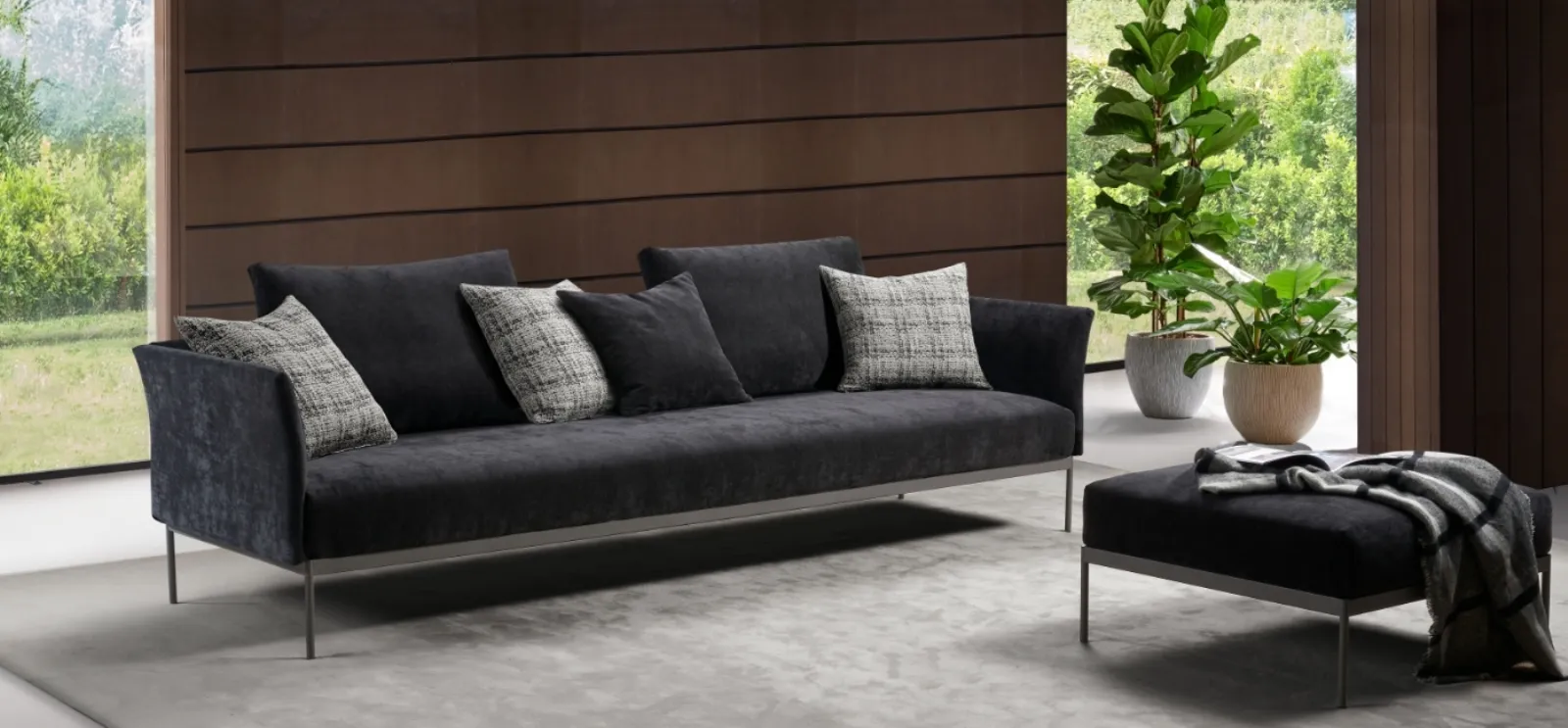 Divano Samuì lineare in tessuto di Excò: ricrea uno spazio intimo e confortevole in spazi design di gran classe. Contattaci per trovare imbottiti di grande qualità, per informazioni e preventivi su questo salotto e su una ricca gamma di divani anche realizzabili su misura. I Salotti della firma sono pensati per essere abbinati a accessori di ogni tipo, come tavolini, lampade e piantane oppure in combinazione con ulteriori divani in tessuto. Se desideri imbottiti lineari come il modello nell'immagine, caratterizzato dalle forme decise e dai volumi che invitano a goderti i tuoi momenti di riposo.