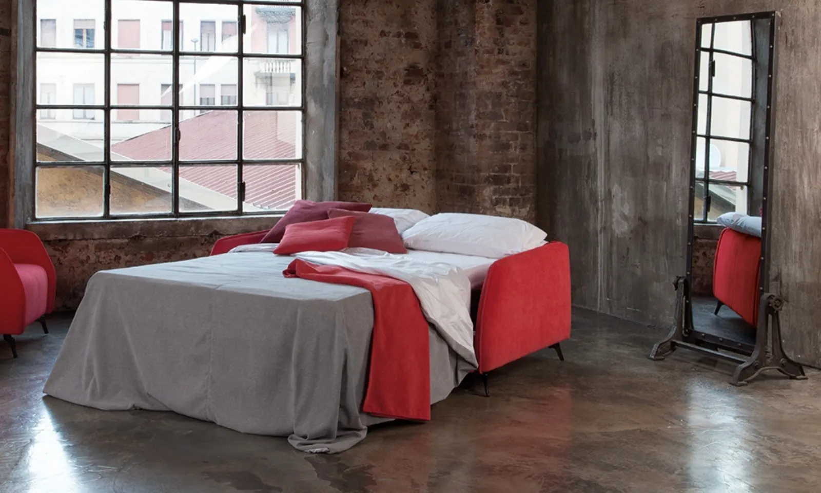 Divano Letto Scarlet di Confortplus: l'azienda offre prodotti di alta qualità garantiti nel tempo. Realizzati con finiture dalle forme decise, permettono di creare uno stile unico. Il modello presente in foto è un divano con letto tessuto, ma nella nostra vasta gamma troverai sicuramente quello adatto a te. Per completare il tuo soggiorno, scegli tra i Salotti di Confortplus e ricrea la zona giorno dei tuoi sogni. Abbinare stili, cromie e elementi accessori è importante: il nostro catalogo moderno di modelli è a tua disposizione nel nostro portale dedicato all’Arredamento Casa. Divano Letto Scarlet di Confortplus: