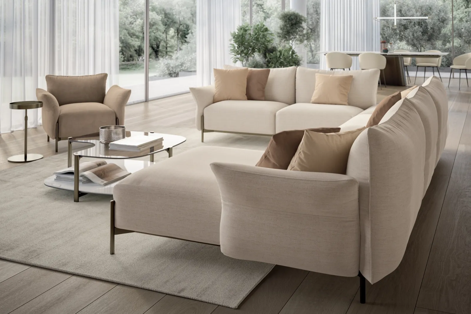 Tra le differenti aziende produttrici di divani, Bontempi si caratterizza per l'eccellenza di materiali e finiture, come rivela il modello in tessuto presente in foto. Arreda il living affidandoti al nostro sito di divani con penisola e fanne un ambiente inimitabile. Divani e poltrone moderni: potrai ricreare un'ambientazione unica scegliendo misure, conformazioni, volumi e materiali. Divano con penisola Victor di Bontempi: ideata dal rinomato brand, leader nel settore Arredamento Casa, questa proposta sa valorizzare il tuo living con un tocco di stile, comfort e intimità.