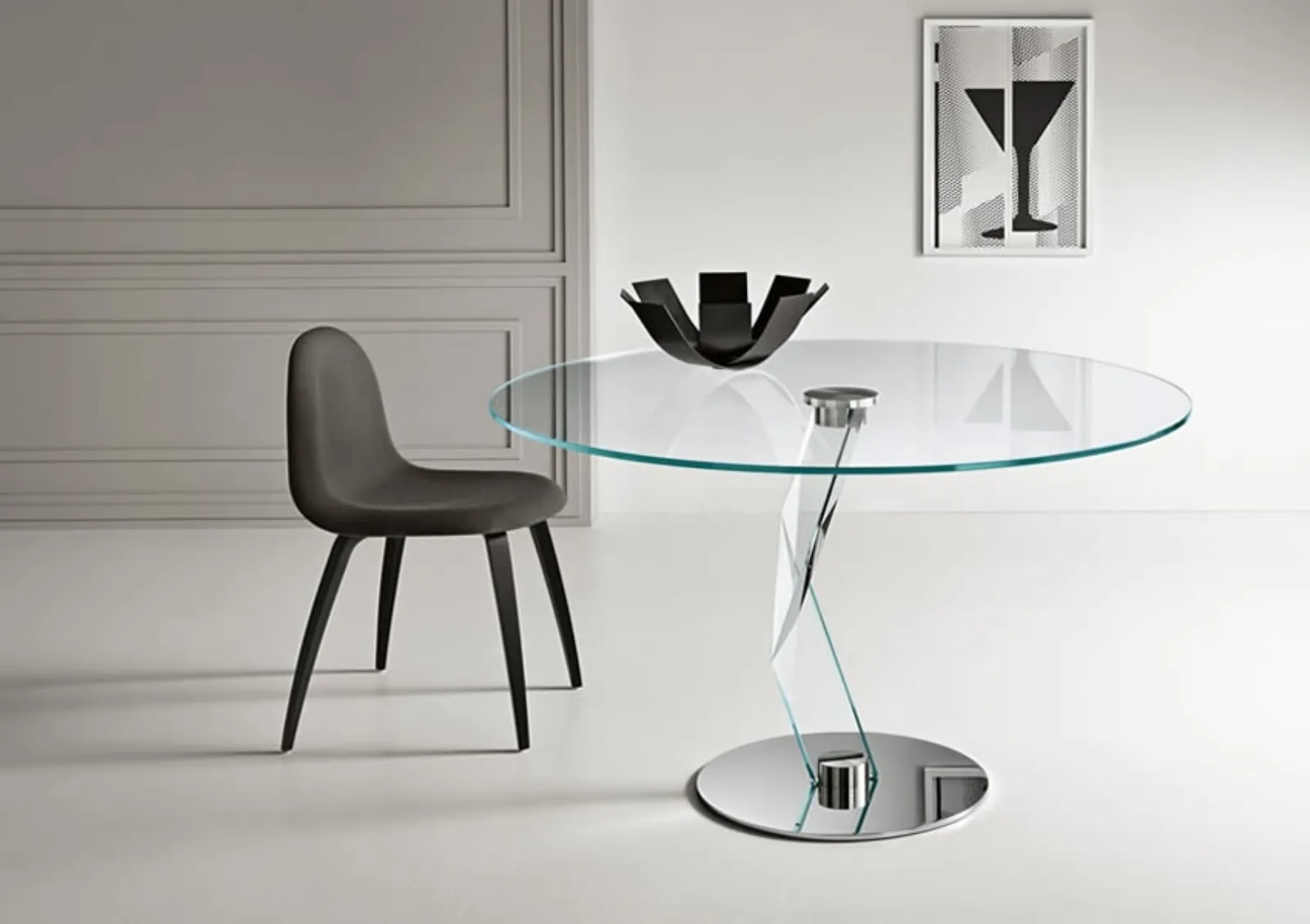 Tavolo rotondo Bakkarat Alto di Tonelli: i tavoli design della firma Tonelli sono ideali per impreziosire il proprio concept d'arredo nel soggiorno o nella zona cucina. Grazie alle loro conformazioni più esclusive, ai materiali di prima scelta e agli accostamenti cromatici, i modelli fissi in vetro - come quello visibile in foto - si adattano ai più differenti spazi e ambienti abitativi, essendo veramente versatili e resistenti. Scopri una ricca gamma di mobili da pranzo per completare i tuoi spazi, contando su differenti possibilità di personalizzazione su misura.