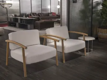 Divano Kasbah in tessuto imbottito e Teak di Living Divani