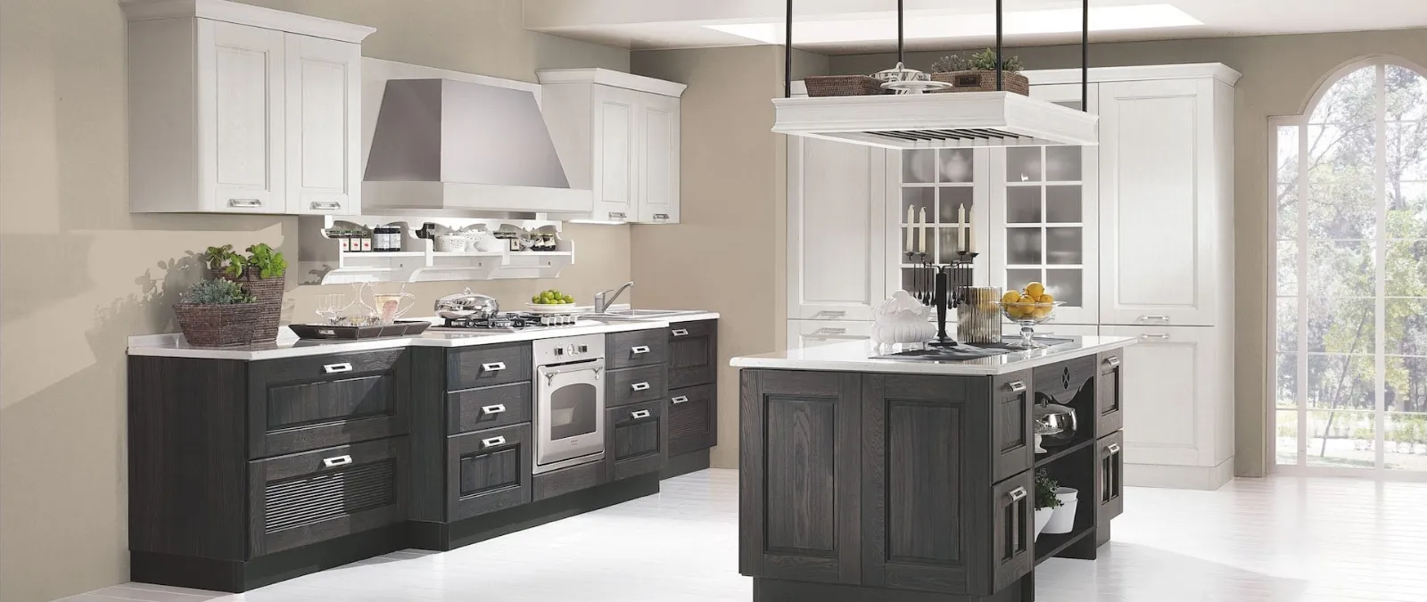 Tra le proposte d'arredo del noto e conosciuto brand, la cucina classica qui presente si distingue per creatività, praticità e presenza di finiture di pregio. Le Cucine Classiche lineari o ad angolo sono contraddistinte dalle linee sinuose e dal loro tipico aspetto romantico, ma al contempo hanno moderne doti contenitive e offrono l'opportunità di rendere gli ambienti agibili e confortevoli. Scopri la Cucina Classica con isola Aisha di Mobilturi: ti sta aspettando insieme all’intero catalogo di soluzioni classiche dell'azienda. Dai forma al tuo concept d’arredo e progetta insieme a noi la tua nuova cucina con isola in stile tradizionale.
