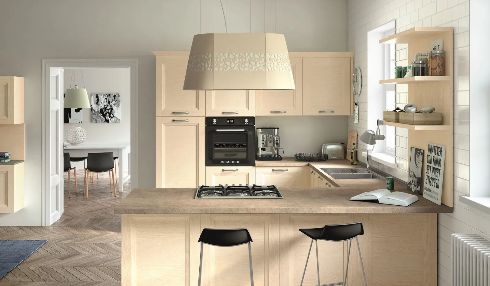 Solo con le più belle soluzioni con penisola potrai ammobiliare l'ambiente secondo le tue personali esigenze abitative. Scopri un ricco catalogo della marca: la collezione completa Essebi ti attende. La Cucina Classica con penisola Alba 05 di Essebi presenta un mood accogliente, elegante e sofisticato, portavoce del tipico aspetto romantico delle Cucine Classiche sia in linea che ad angolo. Se desideri un prodotto di gusto classico, che duri a lungo negli anni mantenendo il valore estetico originale, scegli una cucina classica in laccato opaco resistente e di ottima fattura, come quella qui presente.