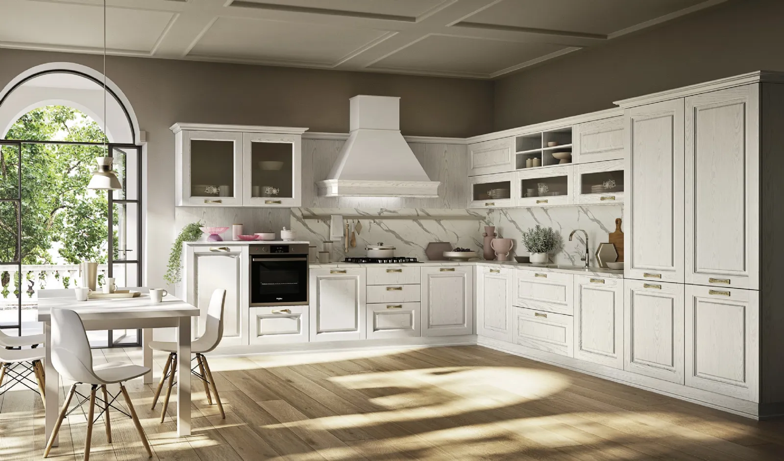 Se quello che cerchi è un prodotto di gusto classico, che duri a lungo nel tempo mantenendo la bellezza originaria, prediligi una cucina classica in legno resistente e di grande qualità, come quella qui disponibile. Scopri un ricco catalogo della firma: la collezione completa Ar-due ti sta aspettando. Solo con le più belle soluzioni ad angolo potrai allestire l'ambiente secondo le tue personali problematiche abitative. La Cucina Classica angolare Easy Classic 004 di Ar-due presenta uno stile accogliente, elegante e raffinato, portavoce del tipico gusto romantico delle Cucine Classiche sia in linea che ad angolo.
