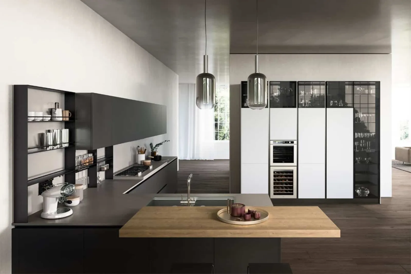 Ottimizzare gli spazi oggi è possibile per merito della ricca collezione di modelli con penisola di design del noto e rinomato marchio Armony. Le soluzioni compositive in laccato opaco come quella qui visibile offrono un notevole vantaggio, quello di essere particolarmente resistenti, eleganti e facili da pulire. Le Cucine Design lineari o angolari danno spazio ad una totale personalizzazione su misura, infatti sono pensate per assecondare tutte le problematiche abitative, hanno linee essenziali che offrono l'opportunità di ottenere il meglio dallo spazio disponibile. Se per allestire la tua zona cucina cerchi un mobile di qualità, durevole nel tempo e pratico lasciati stuzzicare dalle forme semplici dalla Cucina Design con penisola Kappa 03 di Armony.
