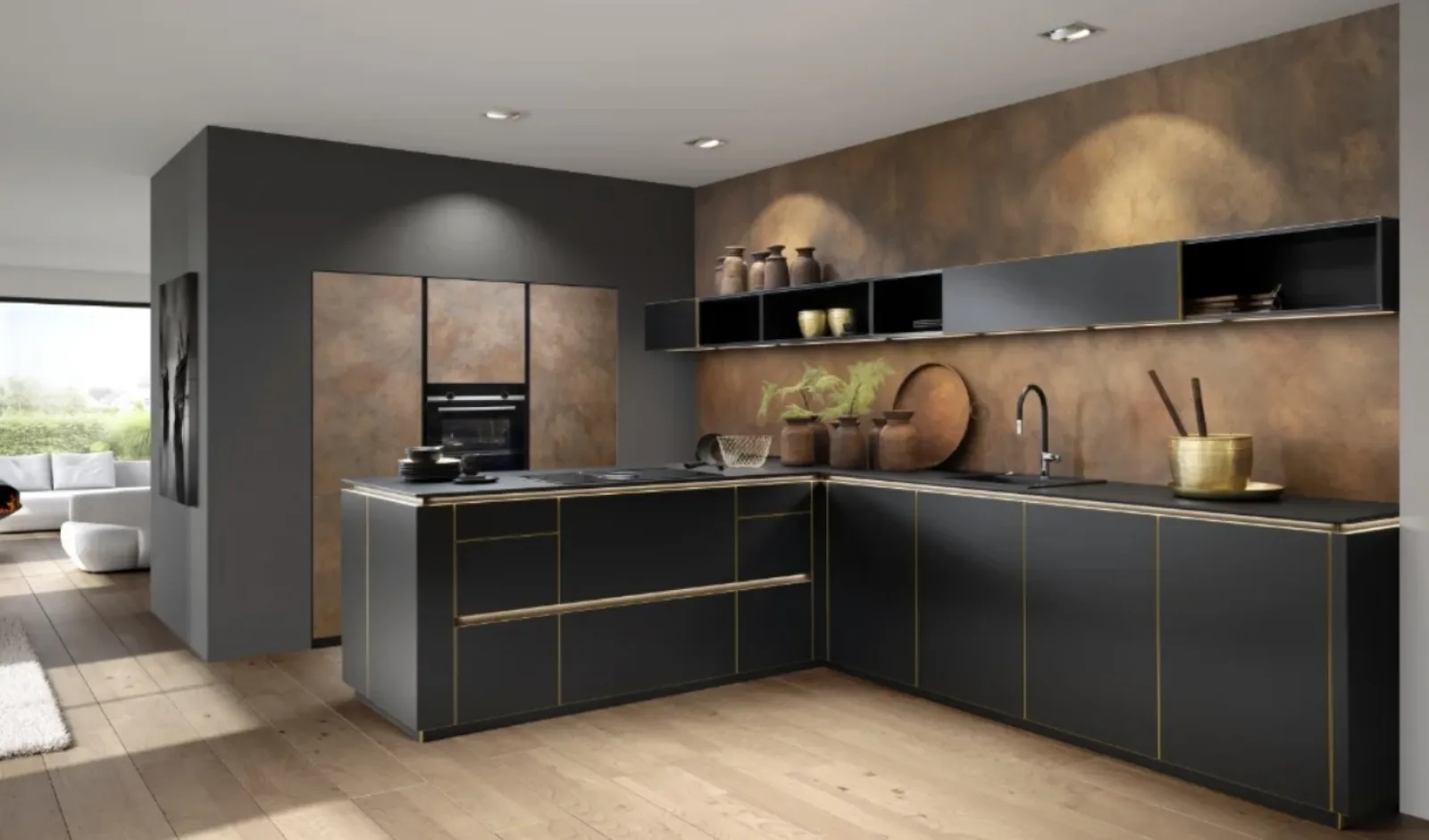 La consulenza architettonica è uno dei fattori basilari da considerare prima di comprare una cucina con penisola in stile design come quella qui visibile. Le Cucine Design in laccato opaco mantengono le doti estetiche originali durante gli anni, assicurando un'ottima resa estetica a completamento delle doti pratiche. Se desideri arredare i tuoi spazi con mobili e complementi di qualità eccellente, il consiglio da parte nostra è quello di acquistare la Cucina Design con penisola Flair Ferro di Nolte. Nolte è il marchio specializzato nella produzione di mobili di design, con cui ogni cliente può sbizzarrirsi in quanto a materiali, forme e palette cromatica.