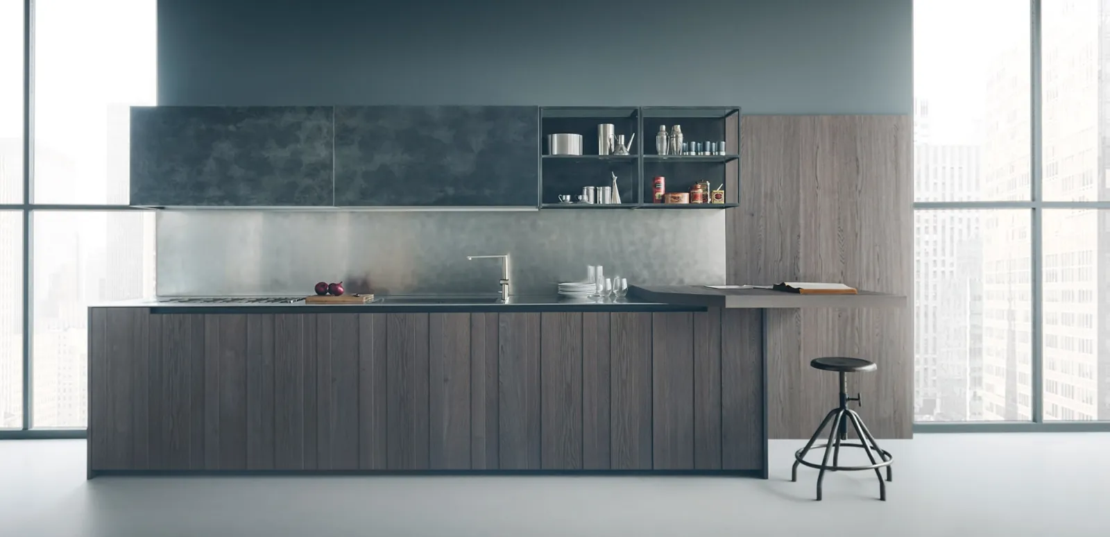 Se per allestire la tua zona cucina cerchi un mobile di qualità, durevole negli anni e pratico lasciati stuzzicare dalle forme semplici dalla Cucina Design con penisola Fifty 02 di Zampieri Cucine. Le Cucine Design lineari o angolari danno spazio ad una totale progettualità su misura, infatti sono pensate per assecondare tutte le esigenze abitative, hanno linee essenziali che offrono l'opportunità di rendere gli ambienti agibili e confortevoli. Le soluzioni in MDI come quella qui disponibile offrono un notevole vantaggio, quello di essere parecchio resistenti, raffinate e facili da pulire. Organizzare al meglio gli interni oggi è possibile grazie alla ricca serie di modelli con penisola di design del rinomato marchio Zampieri Cucine.