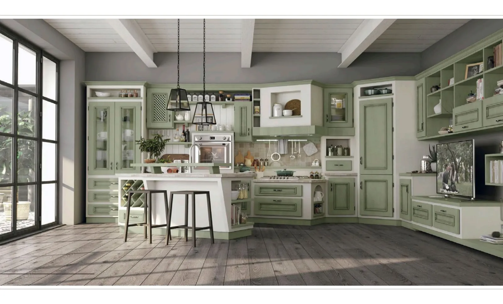 - Cucina in muratura Beatrice laccato salvia Lube