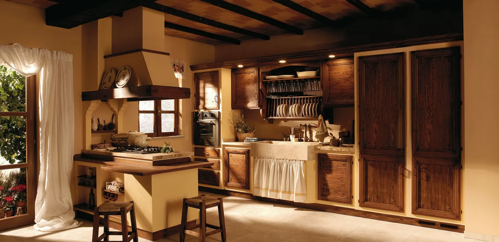Le Cucine in Muratura sono espressione di aspetto suggestivo e linee sinuose tipiche di uno stile country chic intramontabile, inoltre la soluzione può essere attrezzata a piacimento in ogni elemento. Scopri la quasi infinita gamma di soluzioni in legno del rinomato marchio, disponibili nel nostro portale di Cucine. Zappalorto propone molteplici tonalità e un’ampia varietà cromatica per le sue cucine rivestite con piastrelle, dai colori più tenui a quelli più vivaci. Scopri la Cucina in Muratura con penisola Giulietta Corteccia di Zappalorto: un ricco catalogo di soluzioni della marca che garantiscono la caratterizzazione tipica di una composizione sartoriale ti aspetta. Se desideri una cucina con penisola in muratura, il modello presente in foto fa al caso tuo.