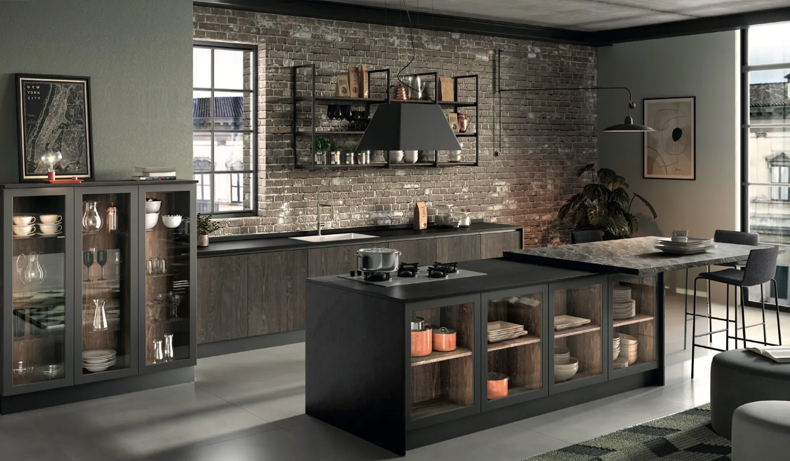 Le proposte moderne dell'azienda sono ideali per chi vuole arredare i propri spazi abitativi con soluzioni innovative e funzionalità, uniche nello stile e di qualità eccellente. Nel nostro sito ti aspettano tanti modelli moderni tra cui quello mostrato in foto realizzato in melaminico, un materiale accattivante e igienico. Essebi è il marchio competente nella produzione di Cucine Moderne: scopri un ricco catalogo di modelli realizzati con un design unico, pratico e dinamico. La Cucina Moderna con isola Azimut composizione 01 di Essebi è stata studiata per chi vuole realizzare una zona cucina moderna con isola, che si adatti perfettamente alla conformazione dei propri spazi.