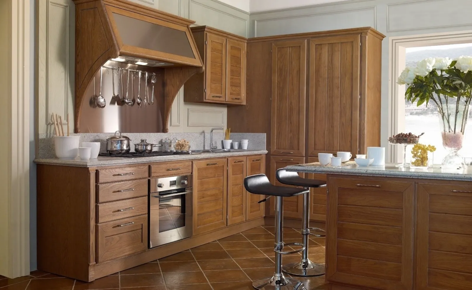 Se sei un amante delle linee essenziali di un design più "leggero", ti raccomandiamo di orientare la scelta verso le Cucine Moderne in linea o ad angolo del brand Le Cucine dei Mastri, di cui siamo distributori. Quando scegli una cucina moderna devi dare priorità al modo in cui vivi i tuoi ambienti, per progettare al meglio la tua composizione d’arredo. Le proposte moderne con isola per la zona cucina sono ideali per chi cerca uno spazio familiare, semplice e immediato ma contemporaneo nello stile. A rendere la Cucina Moderna con isola Clohe Cognac di Le Cucine dei Mastri una tra le più esclusive soluzioni del brand, oltre ai suoi bellissimi motivi, è il materiale: è realizzata in legno per assicurare comfort e durevolezza negli anni.