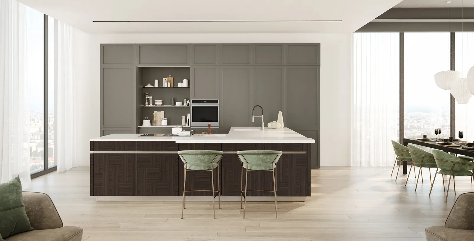 La Cucina Moderna Convivio Mosaico di Veneta Cucine è stata studiata per chi vive la propria casa in modo pratico e operativo ma non sa rinunciare a design e contenuto estetico. Se ami le linee uniche delle Cucine Moderne ad angolo, Veneta Cucine è la risposta ai tuoi desideri. I nostri arredatori sono a tua disposizione per guidarti verso il modello che fa al caso tuo. Le nostre proposte in laccato opaco offrono ai clienti soluzioni moderne in cui ricerca estetica e ricerca tecnologica portano a prodotti di grande qualità, con finiture di grande valore e di lunga durata. Cosa aspetti? Veneta Cucine è la scelta ideale per chi desidera una cucina moderna ad angolo dal design unico e dalle caratteristiche di grande qualità.