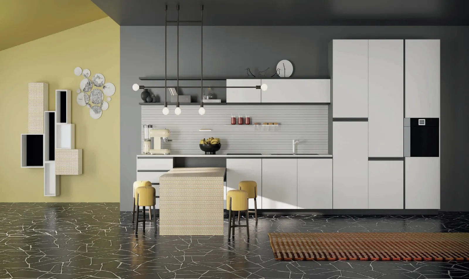 Le Cucine Moderne con penisola hanno delle caratteristiche peculiari comuni: componibilità personalizzabile e la possibilità di ridisegnare e arricchire a piacere i propri spazi. Questa proposta firmata De Rosso è realizzata in HPL, materiale resistente, facile da mantenere e ideale per chi ha un habitus vivendi dinamico. Le Cucine Moderne piacciono tanto poiché coniugano un alto livello di praticità con un design unico, caratterizzato da linee geometriche e pulite e grande capacità di organizzazione degli ambienti da arredare. La Cucina Moderna For Me Kitchen Nine di De Rosso mostrato in foto è un modello che si adatta con facilità a qualsiasi spazio, regalandogli un tocco di praticità e design.