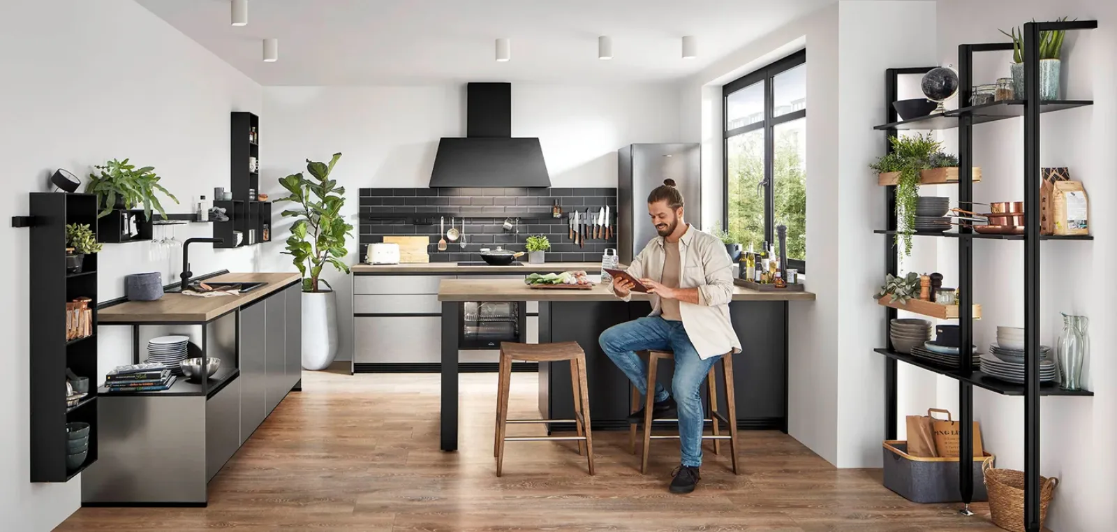 Cucina Moderna con penisola Inox 216 di Nobilia