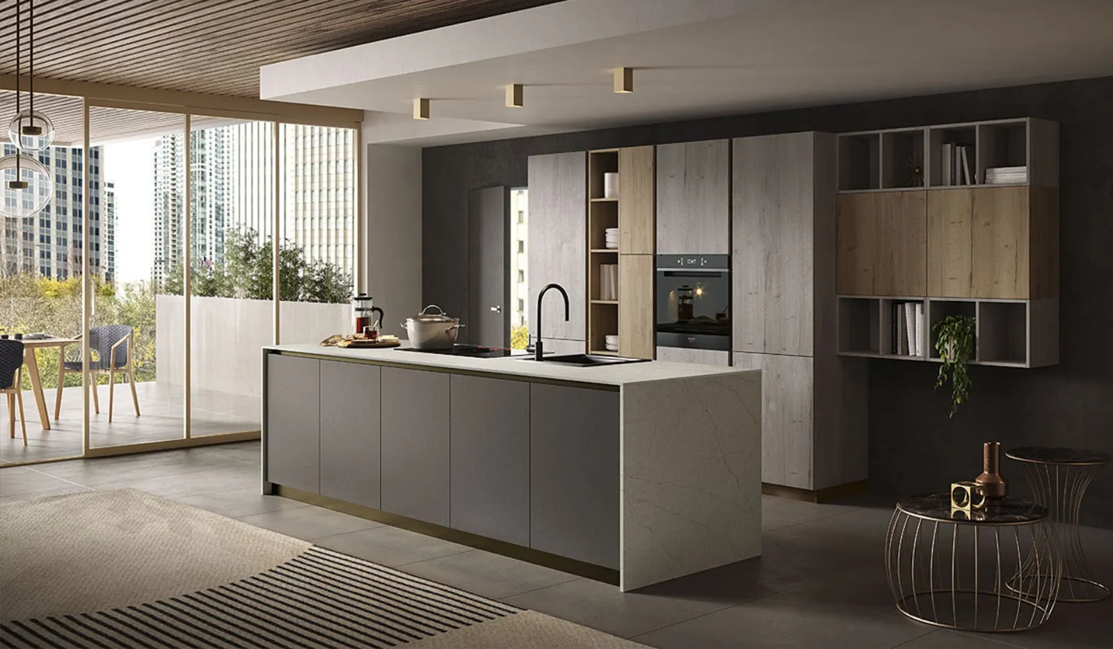 Tra i differenti modelli presenti sul mercato, quelli con isola rendono lo spazio facilmente fruibile e danno la possibilità di godere degli ambienti domestici appieno. Per vivere in pieno comfort il tuo habitat realizza con noi un progetto su misura: ti attendono professionisti d'arredo pronti a guidarti con professionalità nella selezione. Le Cucine Moderne lineari o angolari del marchio Essebi possiedono una generale armonia tra design moderno, progettazione attenta, praticità e creatività. Se desideri comprare un modello in melaminico, grandi doti di componibilità della Cucina Moderna con isola Just24 01 di Essebi ti darà modo di esprimere le tue necessità d’arredo.