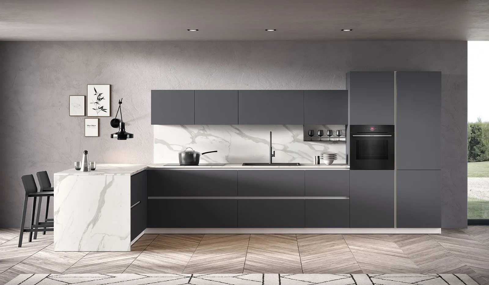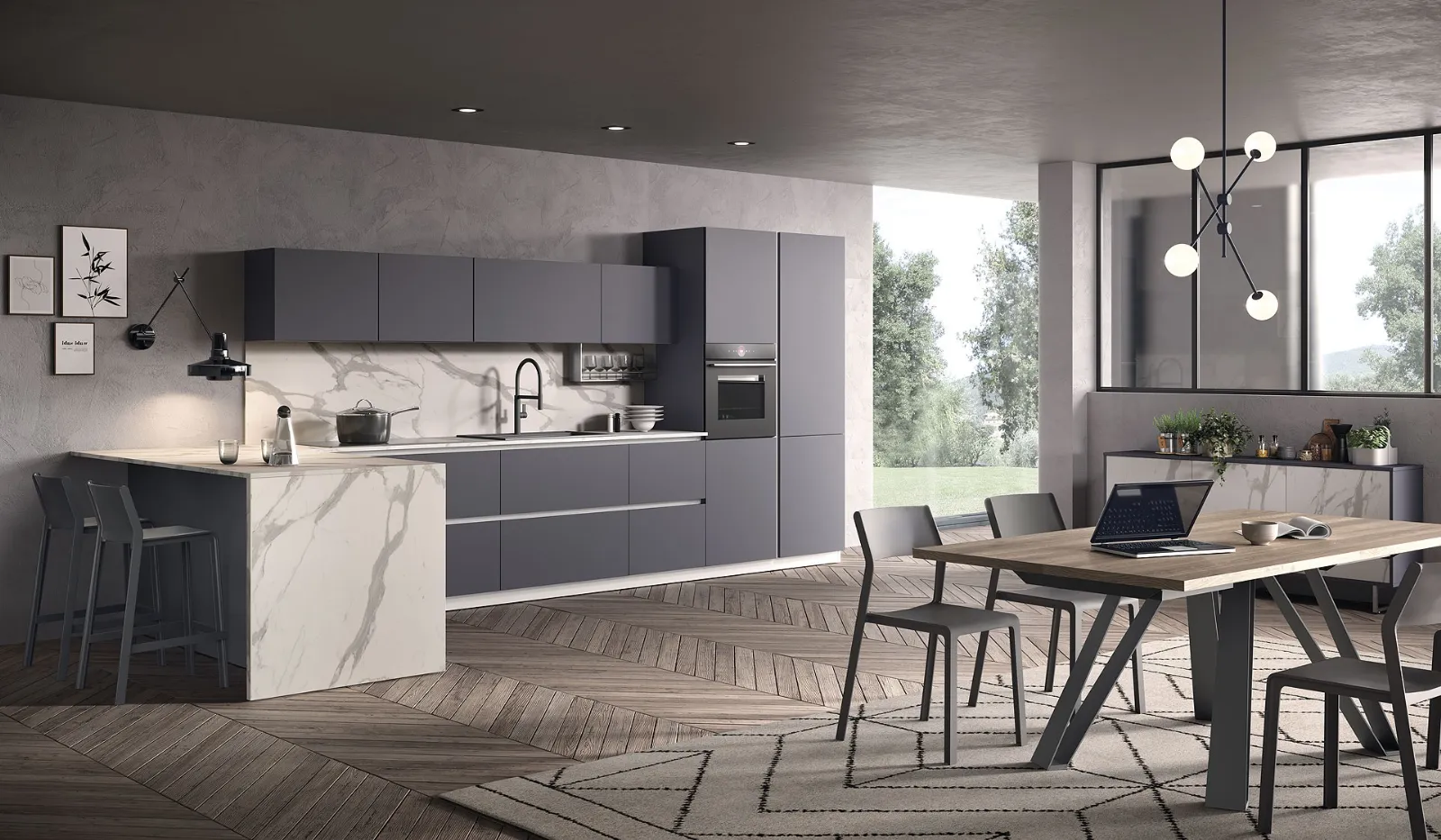 Quando scegli una cucina moderna devi dare priorità al modo in cui vivi i tuoi spazi, per progettare ottimamente la tua composizione d’arredo. A rendere la Cucina Moderna con penisola Just24 05 di Essebi una tra le più belle soluzioni della firma, oltre ai suoi bellissimi dettagli, è il materiale: è costruita in melaminico per assicurare comfort e durevolezza negli anni. Se sei un amante delle linee geometriche di un design più "leggero", ti consigliamo di orientare la scelta verso le Cucine Moderne in linea o ad angolo della firma Essebi, di cui siamo concessionari. Le proposte moderne con penisola per la cucina sono ideali per chi cerca uno spazio accogliente, funzionale ed elegante ma contemporaneo nello stile.