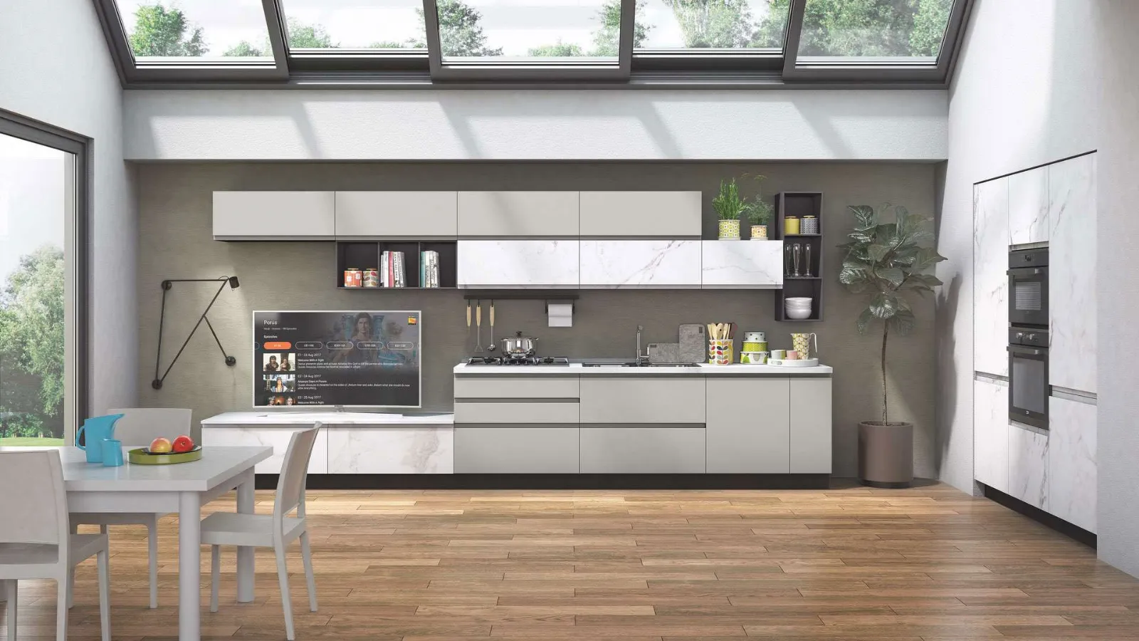 Home - Cucine - Cucine Moderne - Kelly 01 Marmo Bianco e Grigio Acciaio