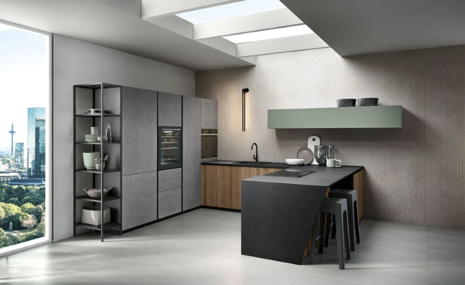 Le proposte moderne della firma sono ideali per chi vuole arredare la propria casa con soluzioni nuove e funzionalità, uniche nello stile e di grande qualità. Nel nostro portale ti aspettano tanti modelli moderni tra cui quello presente in foto realizzato in legno, un materiale accattivante e igienico. Cucinesse è il brand esperto nella produzione di Cucine Moderne: scopri una ricca gamma di modelli realizzati con un design unico, pratico e operativo. La Cucina Moderna con penisola Lab 2 di Cucinesse è stata pensata per chi vuole realizzare una zona cucina moderna con penisola, che si adatti alla perfezione alla forma dei propri spazi.