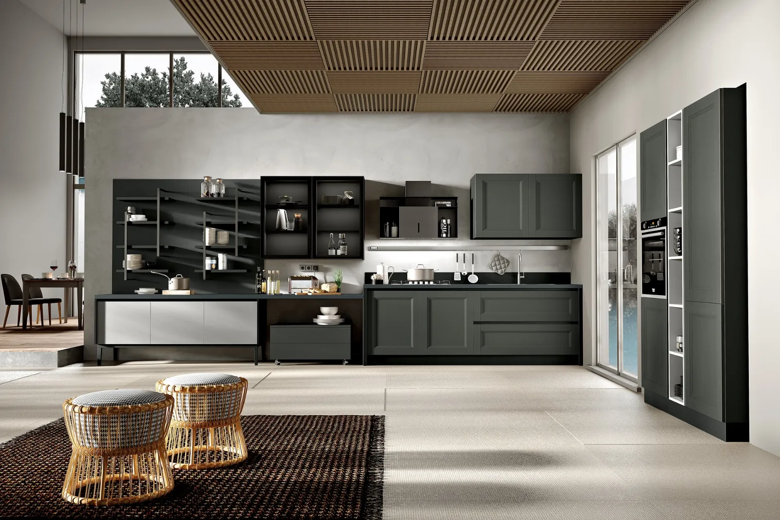 Tra i diversi modelli presenti sul mercato, quelli ad angolo rendono lo spazio altamente fruibile e danno la possibilità di vivere gli ambienti domestici appieno. Per vivere in pieno agio la tua casa realizza con noi un progetto su misura: ti aspettano store manager del settore arredamento pronti a guidarti con professionalità nella scelta. Le Cucine Moderne lineari o angolari della marca Spar possiedono un effetto di complessivo equilibrio tra design contemporaneo, progettazione attenta, praticità e originalità. Se vuoi ordinare un modello in laccato opaco, l'alta componibilità della Cucina Moderna ad angolo Merano 05 di Spar ti darà modo di esprimere le tue necessità d’arredo.