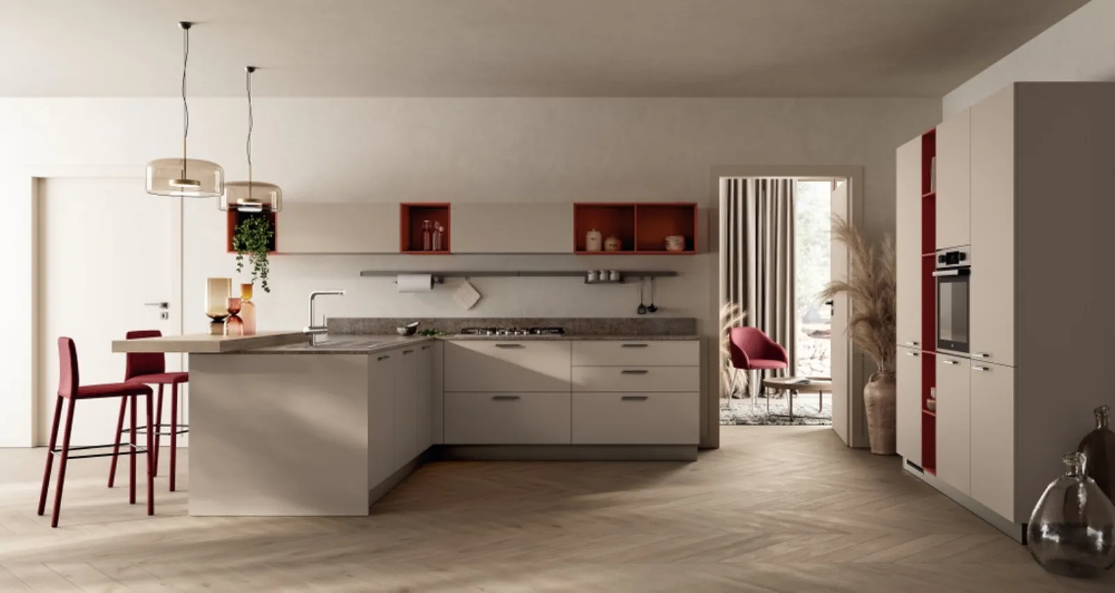 Questa soluzione firmata Scavolini è realizzata in melaminico, finitura resistente, facile da mantenere e ideale per chi ha un habitus vivendi dinamico. La Cucina Moderna con penisola Moda 07 di Scavolini mostrato in foto è un modello che si adatta facilmente a qualsiasi spazio, regalandogli un tocco di funzionalità e stile. Le Cucine Moderne con penisola hanno delle peculiarità comuni: grandi doti di componibilità e la possibilità di ridefinire e arricchire a piacere la propria casa. Le Cucine Moderne vengono apprezzate in quanto mixano un alto livello di funzionalità con un design unico, contraddistinto da linee essenziali e pulite e grande capacità di organizzazione dei luoghi disponibili.