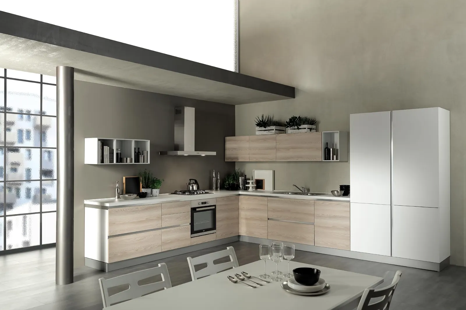 Home - Cucine - Cucine Moderne - Delizia 05 Frassino e Bianco