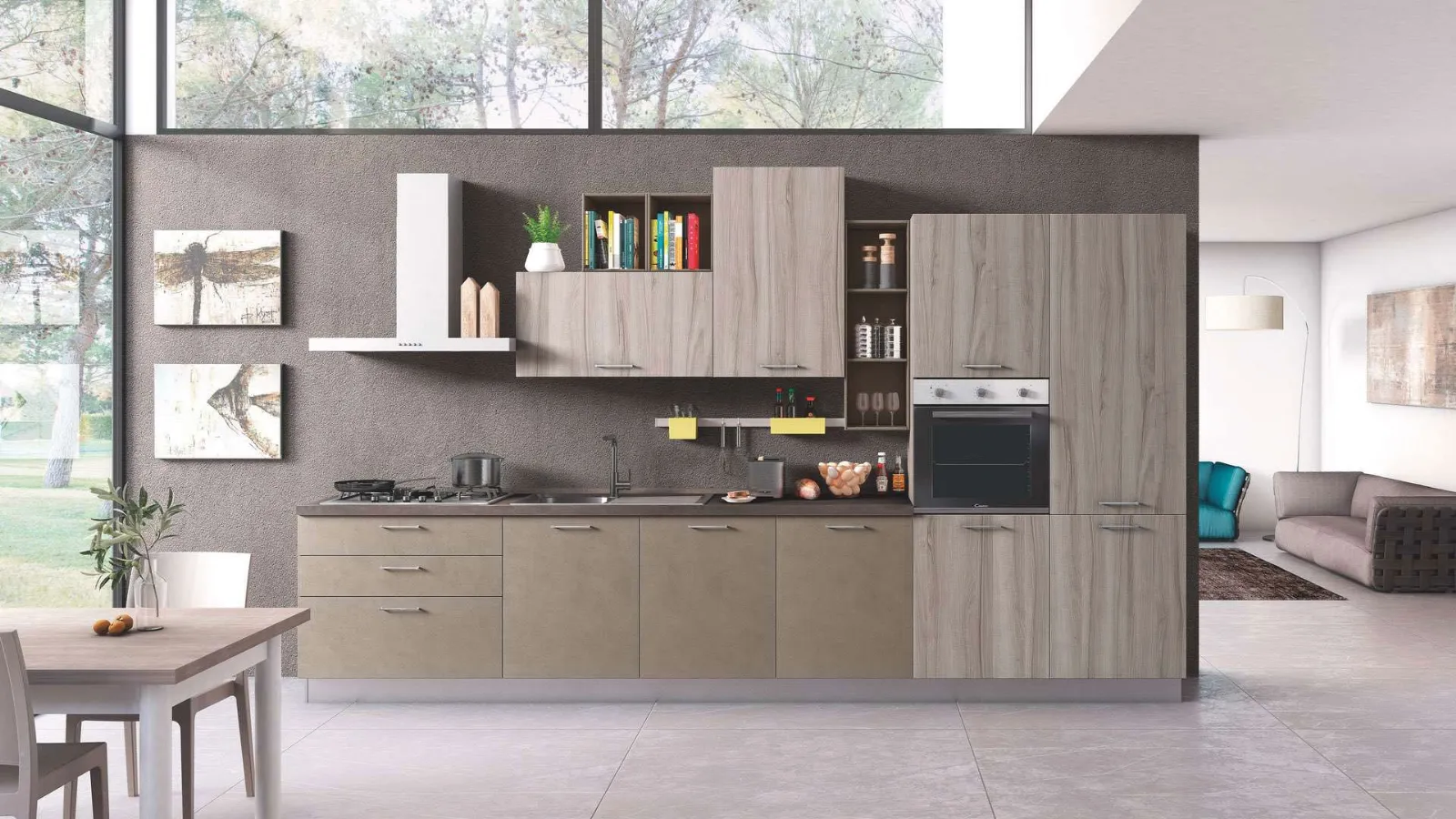 Home - Cucine - Cucine Moderne - New Smart 01 Cemento e Noce