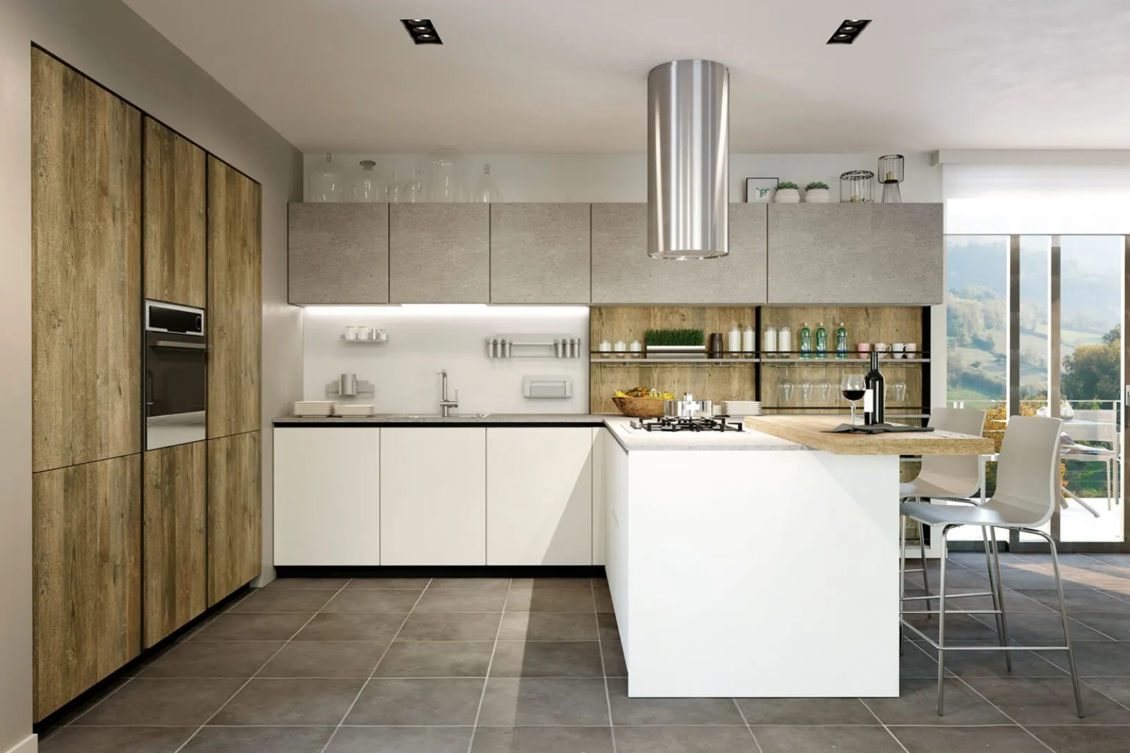 Home - Cucine - Cucine Moderne - Pratica con penisola 05 Tag