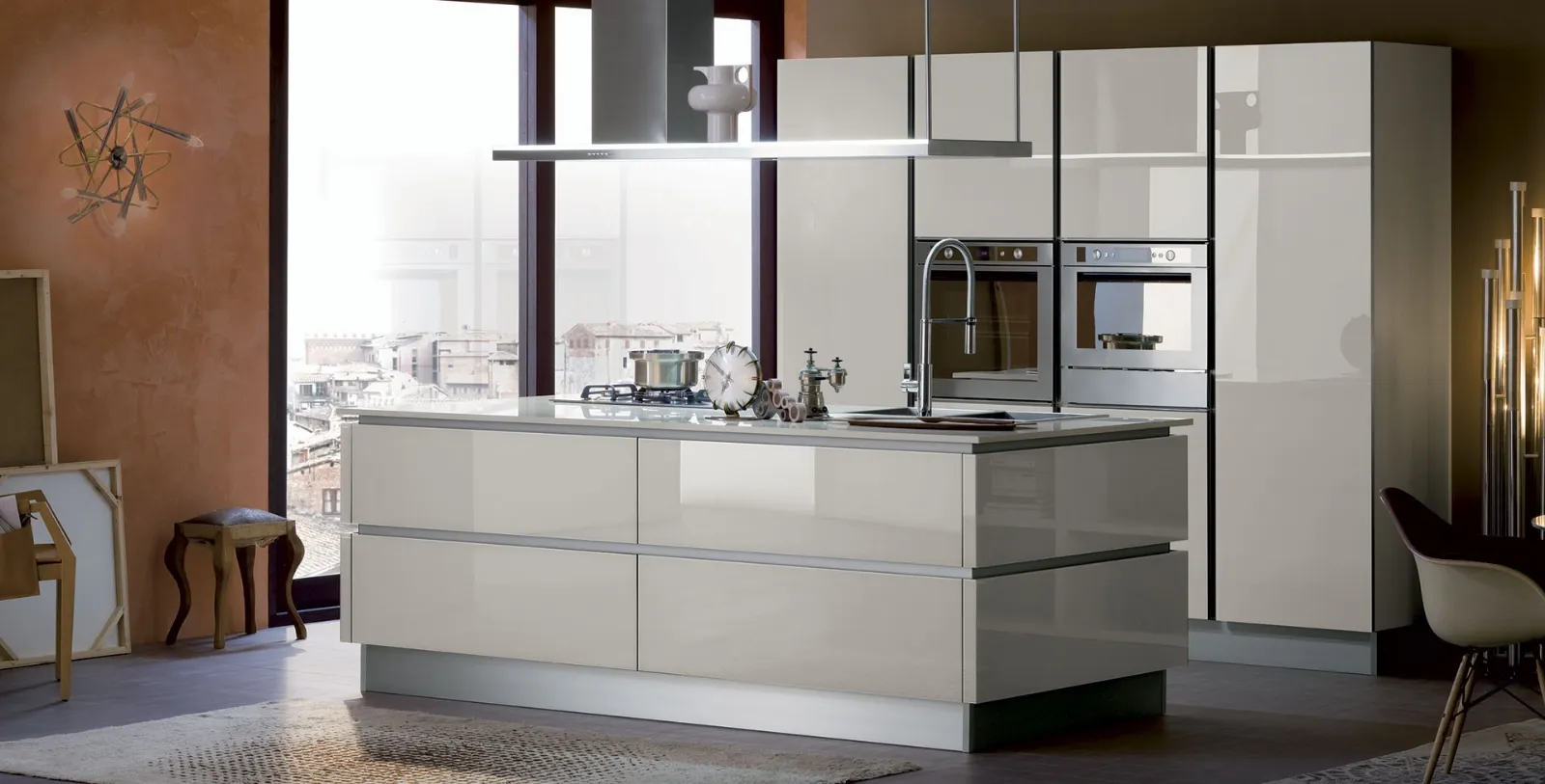 A rendere la Cucina Moderna con isola Ri-flex 05 di Veneta Cucine una tra le più belle soluzioni del marchio, oltre ai suoi bellissime decorazioni, è il materiale: è costruita in vetro per assicurare comfort e qualità negli anni. Le proposte moderne con isola per la cucina sono ideali per chi cerca uno spazio accogliente, funzionale ed elegante ma moderno nello stile. Quando scegli una cucina moderna devi dare priorità al modo in cui vivi i tuoi spazi, per completare perfettamente la tua composizione d’arredo. Se sei un appassionato di linee geometriche di un design più sobrio, ti suggeriamo di orientare l'acquisto verso le Cucine Moderne in linea o ad angolo del marchio Veneta Cucine, di cui siamo rivenditori.