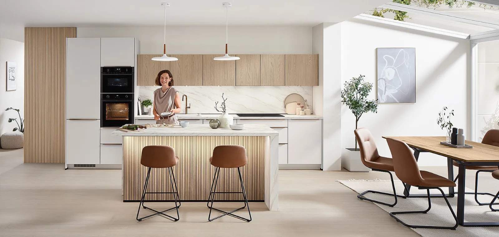 Se vuoi ordinare un modello in laccato opaco, componibilità personalizzabile della Cucina Moderna con isola Softline 509 di Nobilia ti darà modo di esprimere le tue necessità d’arredo. Per vivere in pieno agio i tuoi interni realizza con noi un progetto su misura: ti attendono professionisti d'arredo pronti a guidarti con esperienza nella scelta. Tra i differenti modelli presenti in commercio, quelli con isola rendono lo spazio altamente fruibile e danno la possibilità di vivere gli ambienti domestici appieno. Le Cucine Moderne lineari o angolari dell'azienda Nobilia possiedono un generale equilibrio tra design moderno, ricerca tecnologica, praticità e creatività.
