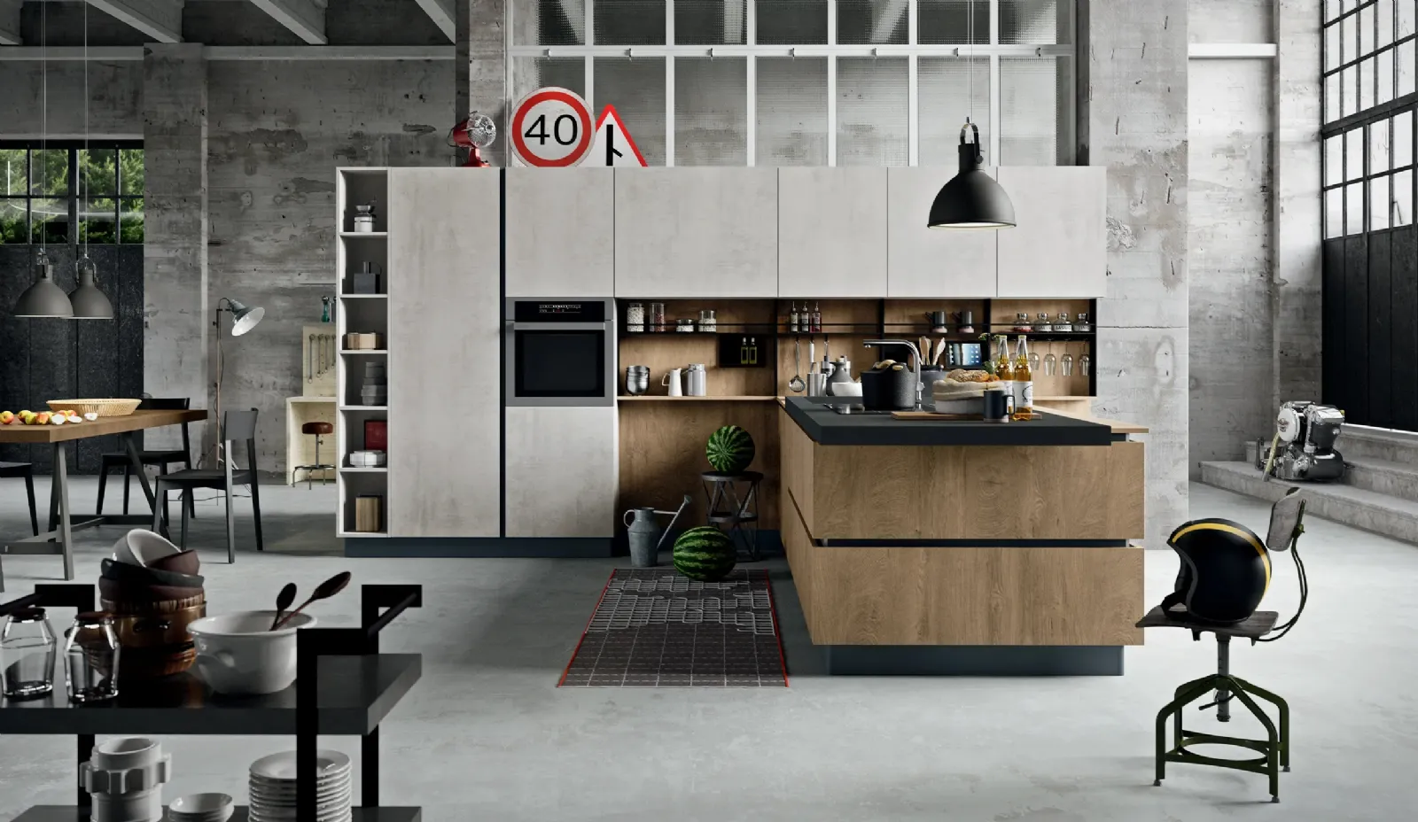 Se vuoi acquistare un modello in laminato, l'alta componibilità della Cucina Moderna SP-22 Industrial 05 di Astra ti darà modo di esprimere le tue esigenze d’arredo. Le Cucine Moderne lineari o ad angolo del brand Astra possiedono un generale equilibrio tra design contemporaneo, ricerca tecnologica, funzionalità e creatività. Per vivere in pieno agio i tuoi interni realizza con noi un progetto su misura: ti aspettano store manager del settore arredamento pronti a guidarti con esperienza nella scelta. Tra i molteplici modelli presenti in commercio, quelli con penisola rendono lo spazio facilmente fruibile e danno la possibilità di vivere gli ambienti domestici appieno.