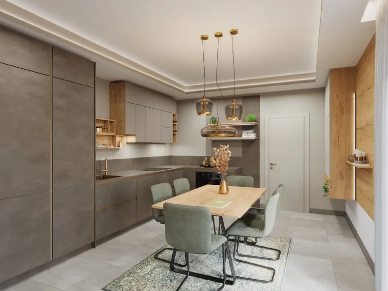 Le proposte moderne ad angolo per la cucina sono ideali per chi cerca uno spazio accogliente, funzionale ed elegante ma contemporaneo nello stile. Se sei un amante delle linee geometriche di un design meno "pesante", ti consigliamo di orientare la scelta verso le Cucine Moderne in linea o angolari del marchio Life Cucine, di cui siamo concessionari. A rendere la Cucina Moderna angolare Terra Gold di Life Cucine una tra le più belle soluzioni del marchio, oltre ai suoi bellissime decorazioni, è il materiale: è realizzata in melaminico per garantire comfort e durevolezza nel tempo. Quando scegli una cucina moderna devi dare priorità al modo in cui vivi i tuoi spazi, per progettare alla perfezione la tua composizione d’arredo.