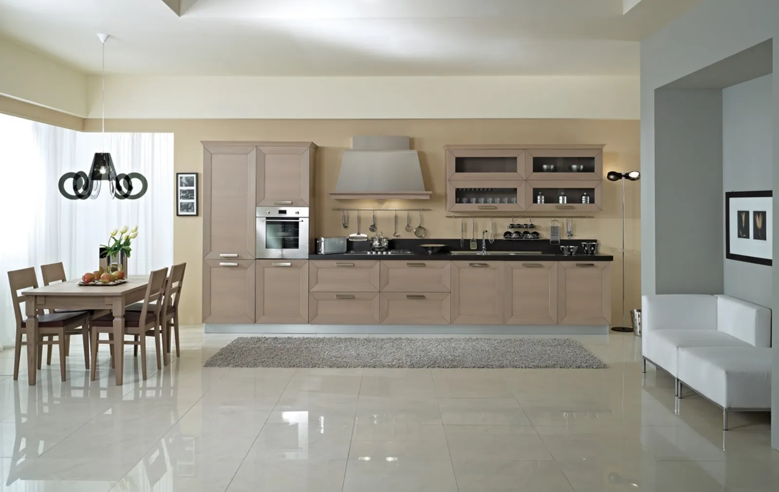 Le Cucine Moderne in linea hanno delle caratteristiche peculiari comuni: componibilità personalizzabile e la possibilità di ridefinire e valorizzare a piacere la propria casa. Questa soluzione firmata Arca è realizzata in legno, materiale resistente, facile da mantenere e ideale per chi ha un habitus vivendi dinamico. Le Cucine Moderne piacciono molto proprio perché coniugano un alto livello di praticità con un design unico, connotato da linee geometriche e pulite e grande capacità di ottimizzazione dei luoghi disponibili. La Cucina Moderna lineare Trendy di Arca mostrato in foto è un modello che si adatta con facilità a qualsiasi spazio, donandogli un tocco di praticità e design.