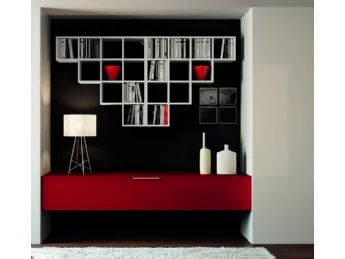 Parete Attrezzata sospesa con libreria Insieme Composizione 05 di Zanotti Mobili