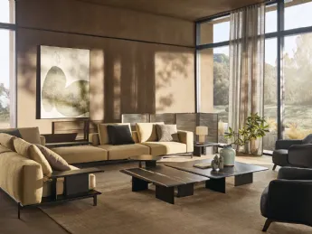 Salotto lineare in tessuto Gentlemans Friends di Poliform
